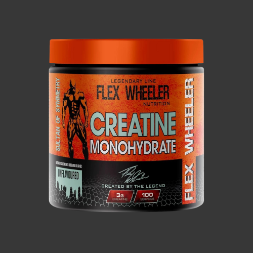 Pure Creatine Power: Each container includes 100 servings of pure creatine monohydrate, exclusively available at flexwheelernutrition.com.